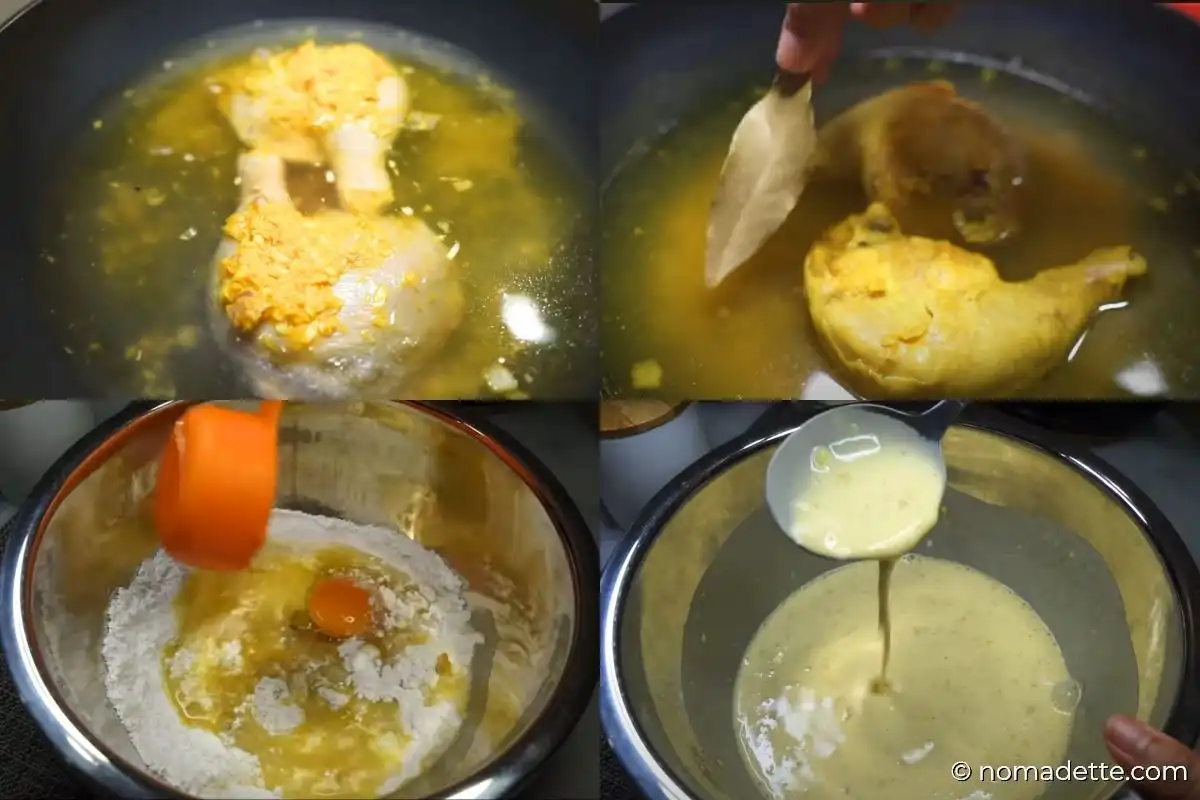 - Remove chicken and set aside. Reserve the stock for the batter.