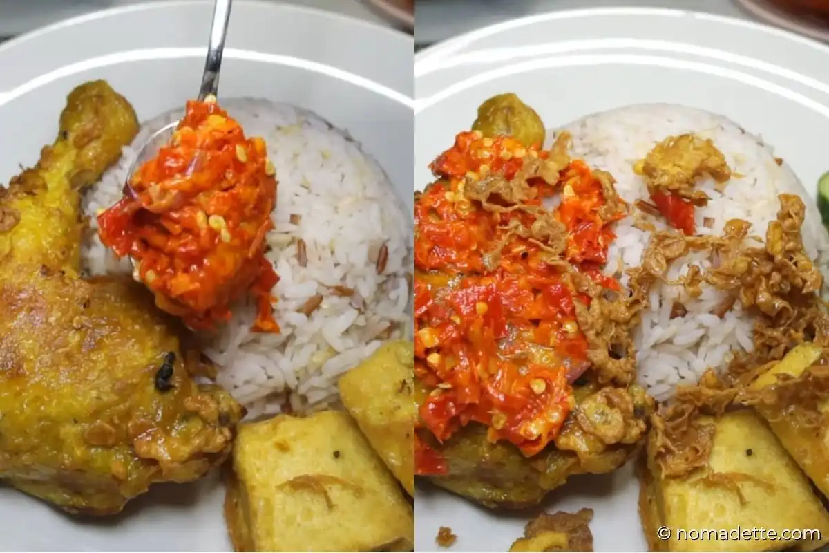 - Store: Keep chicken, sambal, and accompaniments in separate airtight containers in the fridge for up to 2 days.