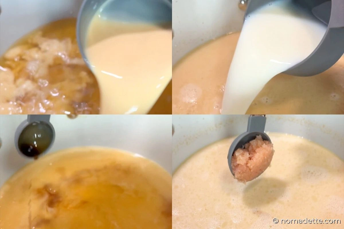 - Simmer your dashi or chicken stock with milk and evaporated milk or cream.