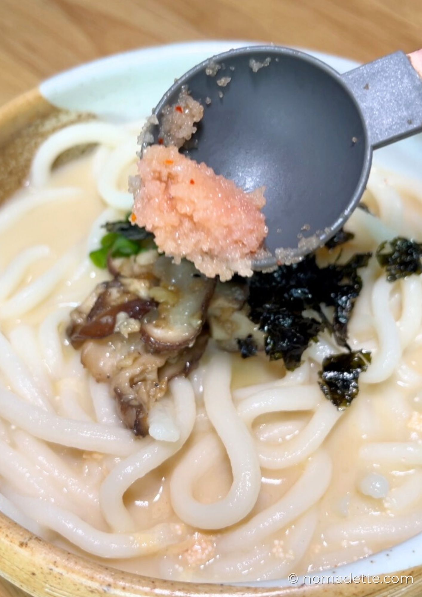 - Ultra comforting. Chewy udon, creamy broth, savory mentaiko — it’s a hug in a bowl.