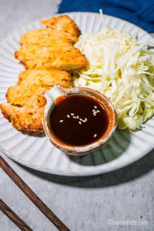 - Arrange sliced chicken, sliced cabbages on a plate. Serve with the tonkatsu sauce and steamed rice. Enjoy!