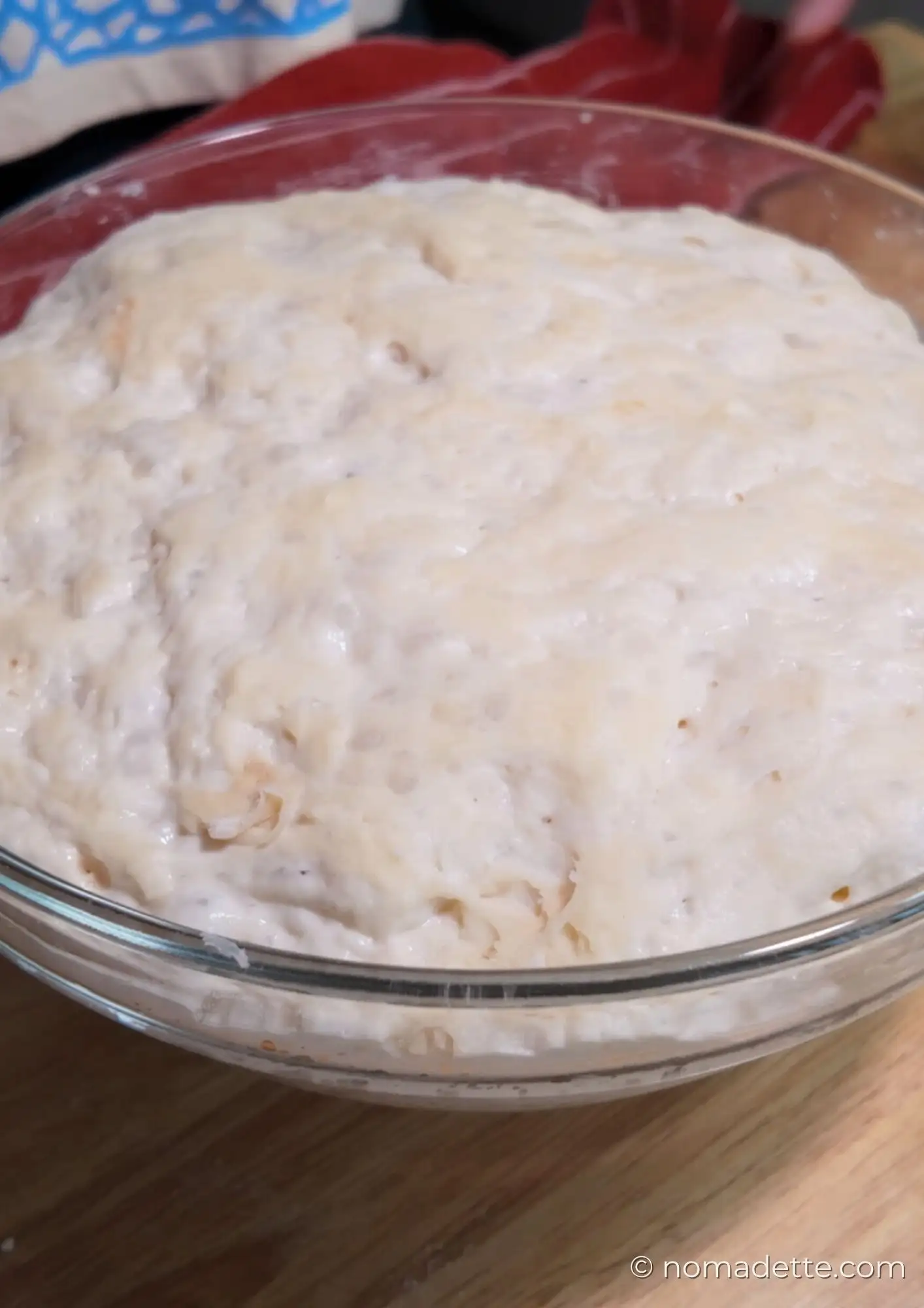 - Cover the bowl and let it rise at room temperature for 8–10 hours, until roughly doubled in size.