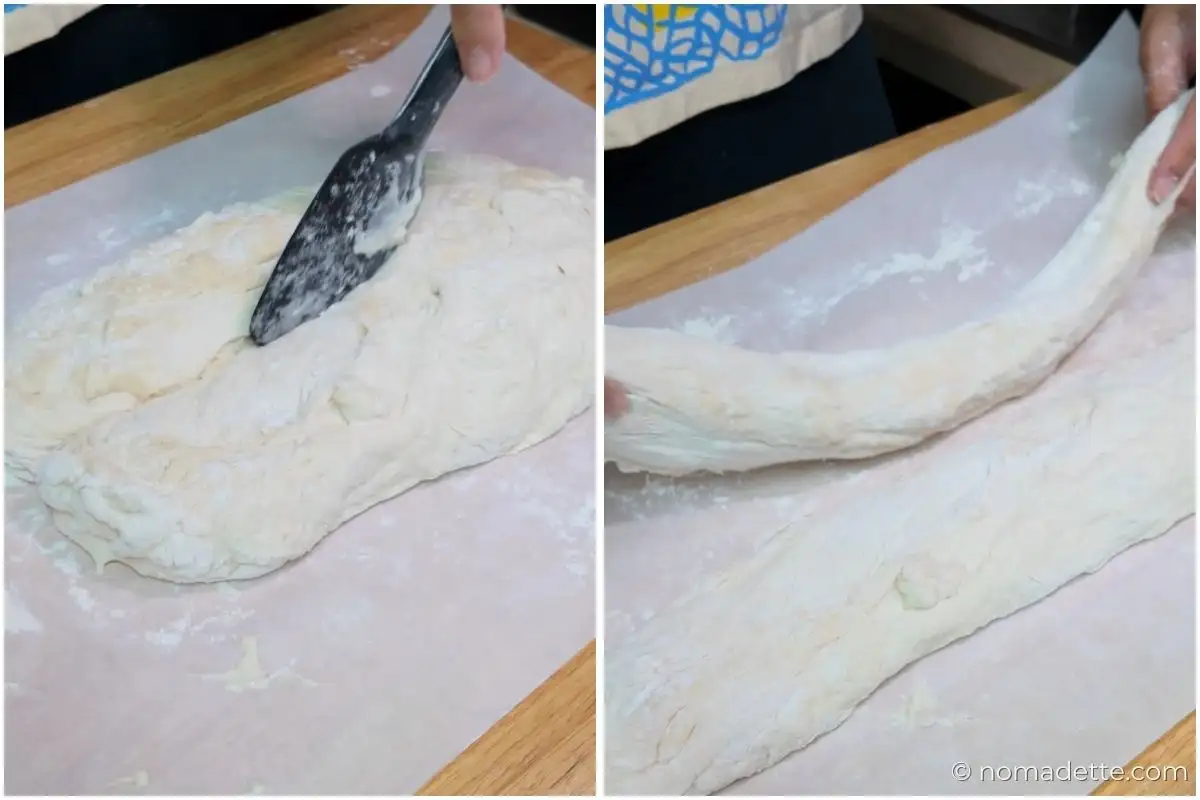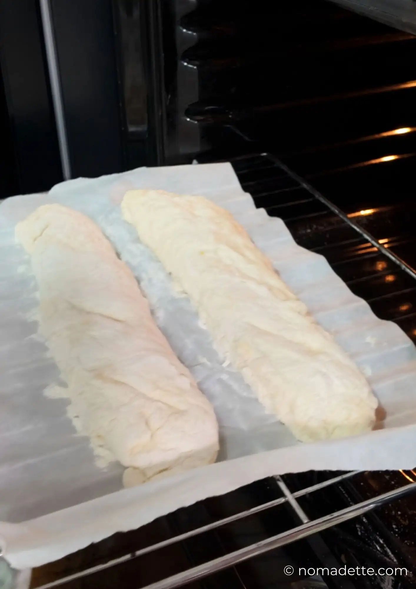 - Gently stretch each piece into a baguette shape. Rustic and slightly uneven is perfect — no precision needed!