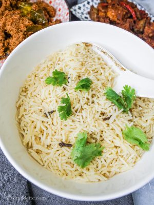 Grind to a powder with a pestle and mortar, or be like me and just use a spice mill or grinder. For the purposes of this recipe, I toasted 1 tablespoon of rice and I had leftover. You can make a big batch and keep in the pantry for future use.