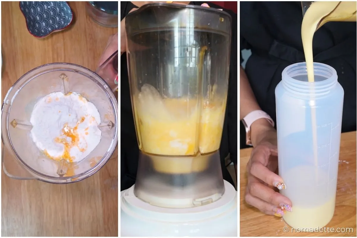 • Blend for about a minute until you get a completely smooth, lump-free batter. Do not blend for too long as it can overwork the gluten.