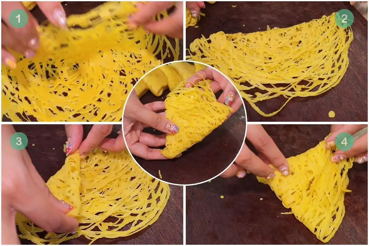 Traditionally, the batter is poured through a special mould with multiple holes to create that signature net pattern, though today you’ll sometimes see it made with squeeze bottles specially made for roti jala.