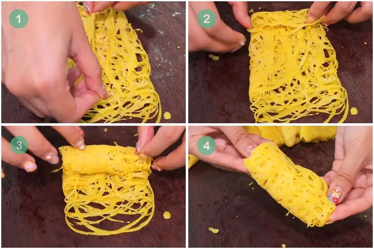 • Start with two layers of roti jala, stacked over one another.